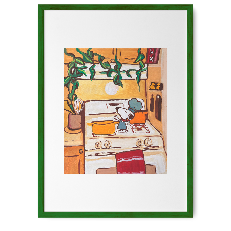 Na cozinha mais charmosa da casa, o Snoopy veste seu avental e comanda as panelas com talento e criatividade. Uma cena divertida e acolhedora que traz o calor do lar e o sabor das boas memórias.